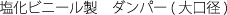 ダンパーは、プラントにおける排気系ダクトの風量調節に使います。ウオームギア式ハンドルを用いており、管内の風圧によって弁体が開く事はありません。軽く、耐酸性、耐衝撃性に優れた硬質塩化ビニールを用いて、呼び径75Aから1500Aまで製作致します。